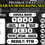 Prediksi HK Togel 23 Oktober 2025 Prediksi Boss Hk siang hari ini yang kami berikan hari ini pastinya sudah berdasarkan rumus dari Master Togel serta Suhu yang sangat berpengalaman di Bidang Toto Gelap. Angka Keluaran togel yang kami berikan juga sangat Jitu dan Akurat bukan Abal-abal karena kami hanya memberikan Angka Jitu yang Pasti Keluar. […]